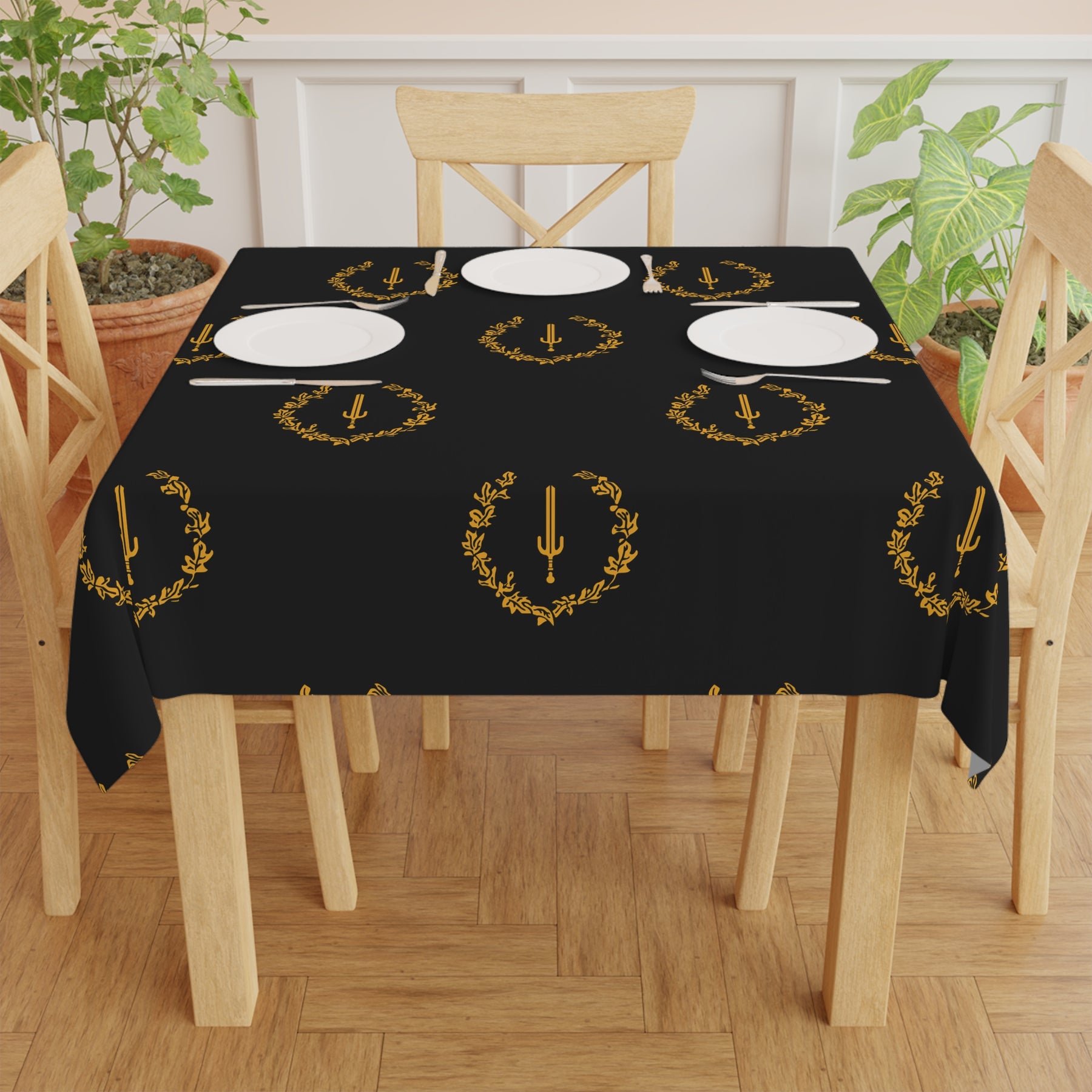 Uplift any home's aesthetics with this personalized tablecloth. Measuring in at 55.1" by 55.1", this personalized table cloth is a full-print product meaning it will display your custom designs on the entirety of the cloth's surface. What's more, the 100% polyester fabric construction makes it effortless to maintain like new.