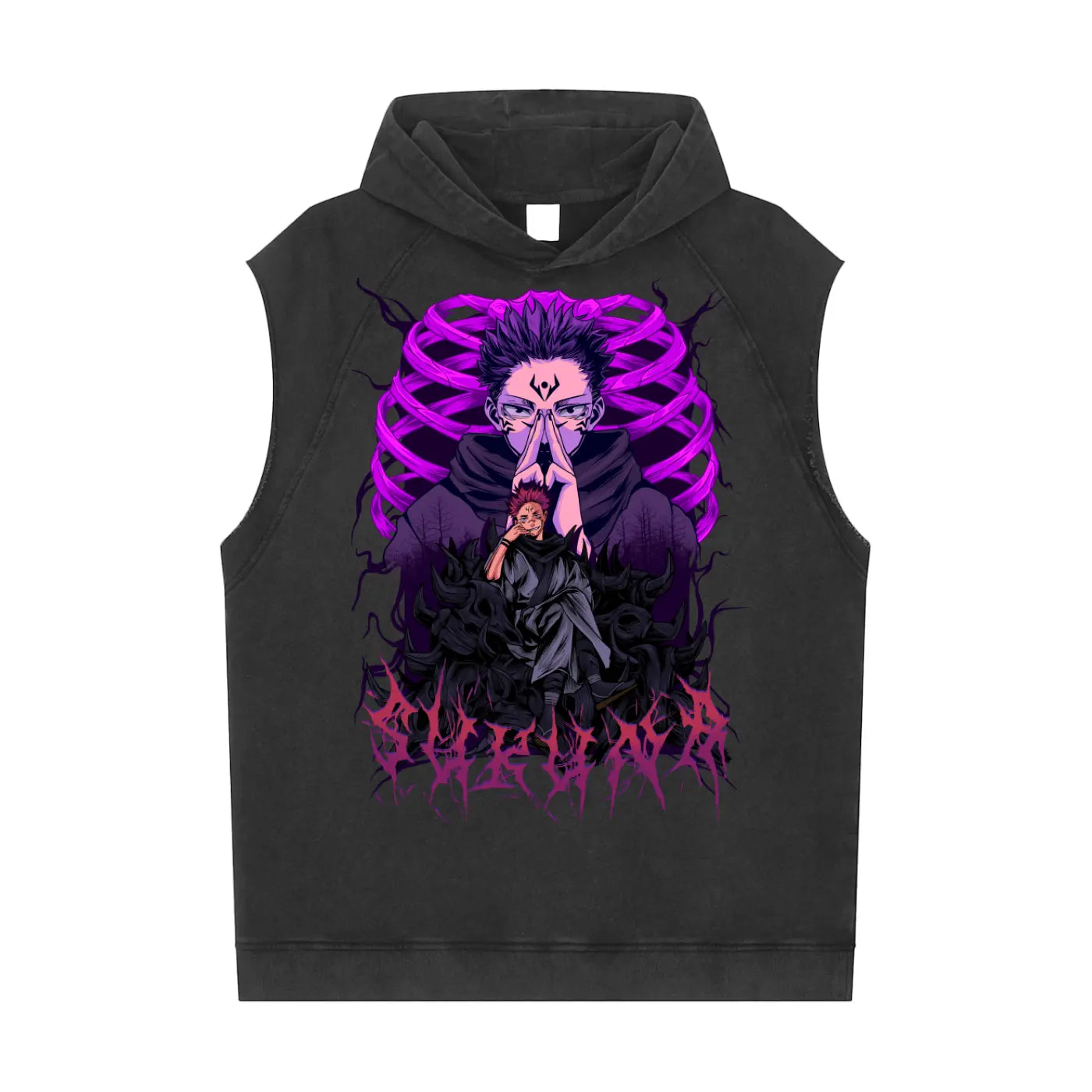 Sukuna Jujitsu Kaisen Snow Washed Sleeveless Hoodie ODMPOD