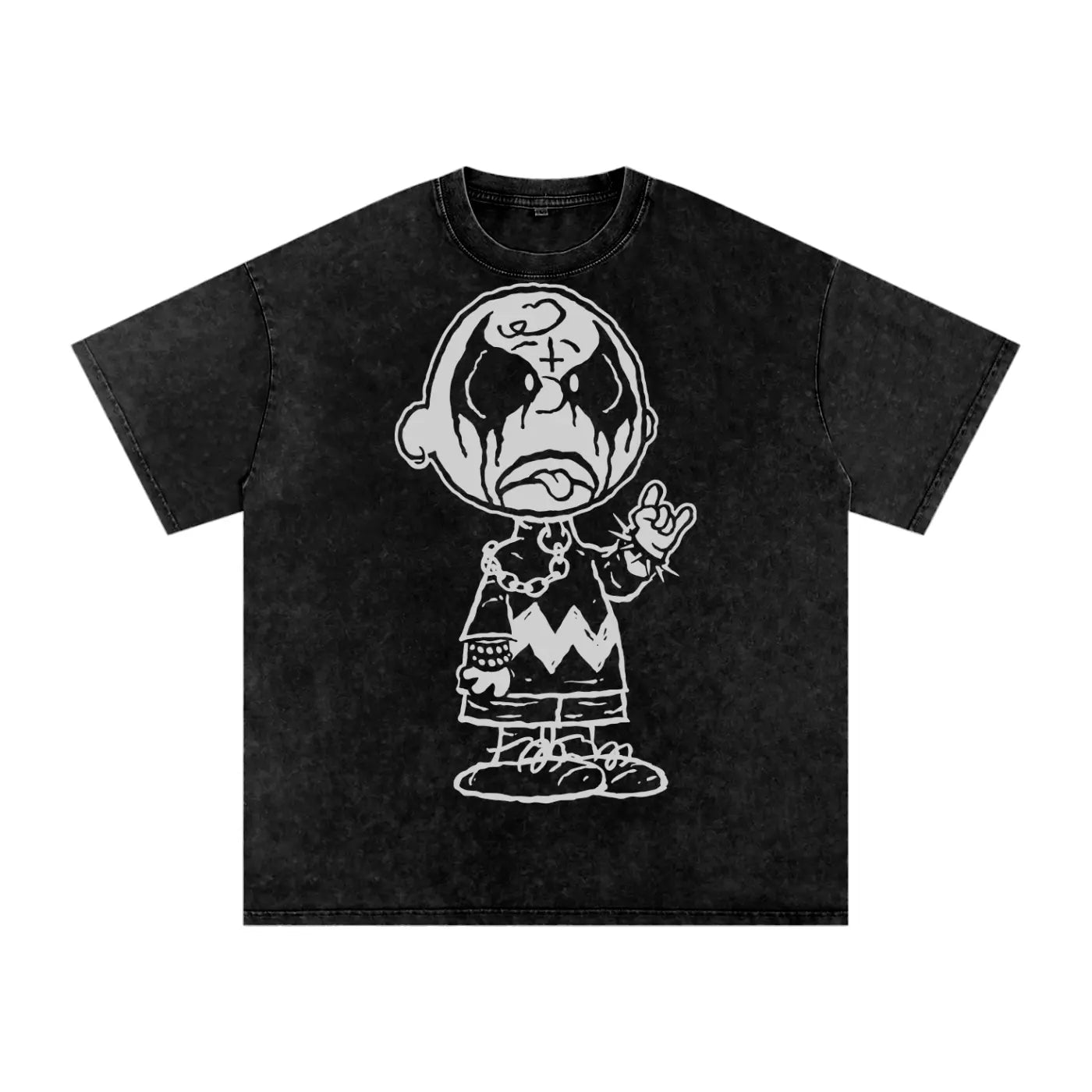 Goth Charlie Brown Acid Wash Oversize T-Shirt - 250 GSM