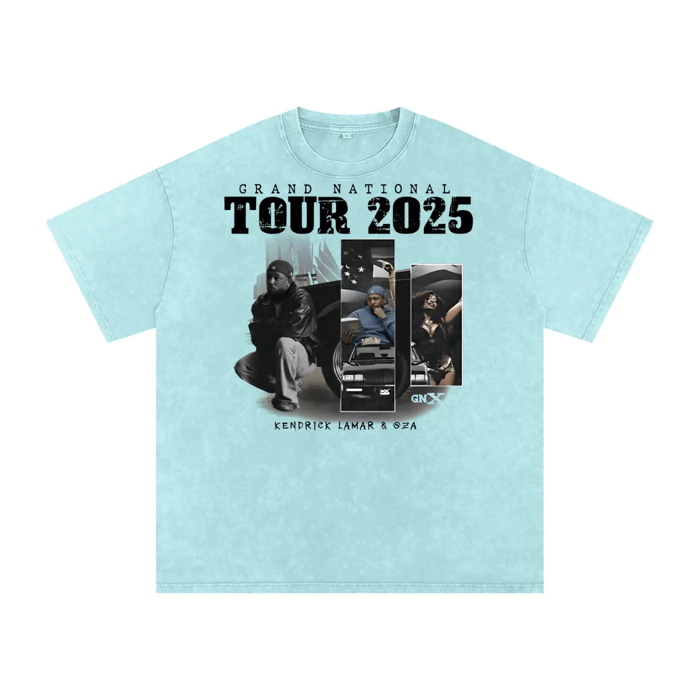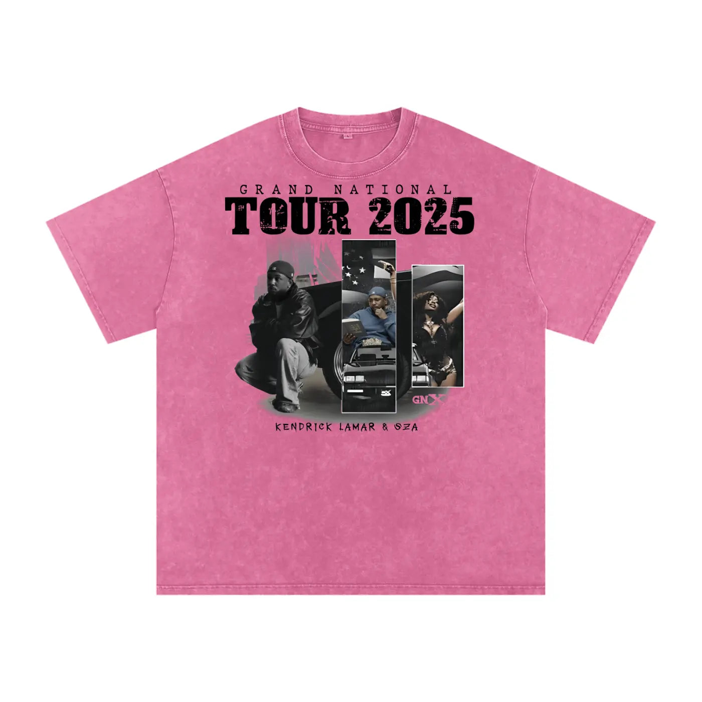 If you're a fan of Kendrick Lamar and SZA, this t-shirt is perfect for you. The collaboration between these two iconic artists brings something unique to your wardrobe. Because it features their signature styles, wearing this shirt makes a statement about your taste in music and fashion. But what truly sets it apart is its acid wash finish and oversized fit, which give it a vintage yet modern look.