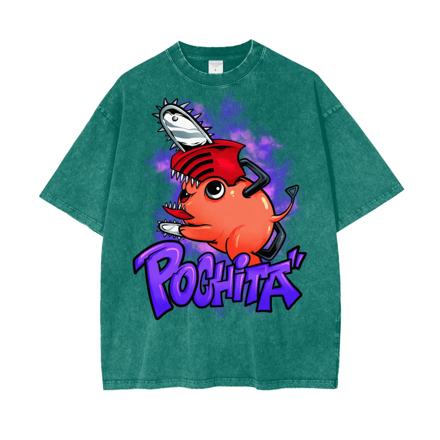 Pochita Chainsaw Man Oversize Snow Washed T-Shirt ODMPOD
